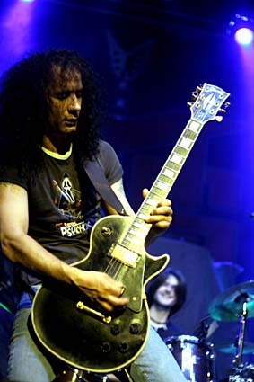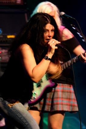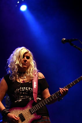With high expectations I entered 013, I was totally surprised; there were only about 50 people in the hall. Was this the crowd that celebrates the 25th anniversary of MSG? At 20:00 Nikki Puppet and her friends got started and they made their own rock’n’roll-party with a sound not many supporting bands get. Nikki has a real rock’n’Roll voice, a bluesy and powerful female rock voice, although at the end of their show she doesn’t have that power anymore. She gets a few hands of the people of 013 on each other though. On "Militant Lover" (great song) guitar player Christos Mamalitsidis showed how to play a great solo, later on in the show there was even a drum solo (please don’t do this next time)! After half an hour they left the stage for MSG. At that time the audience fortunately had increased till a couple of hundred fans. At 21:45 Michael Schenker entered the stage and played the first riffs of "Assault Attack" on his black and white flying V. Bass player Rev Jones is a real stage-animal, he has his own way of head banging, it’s more a like a helicopter. He plays quite fast, it’s a pleasure to see this guy playing his bass guitar.